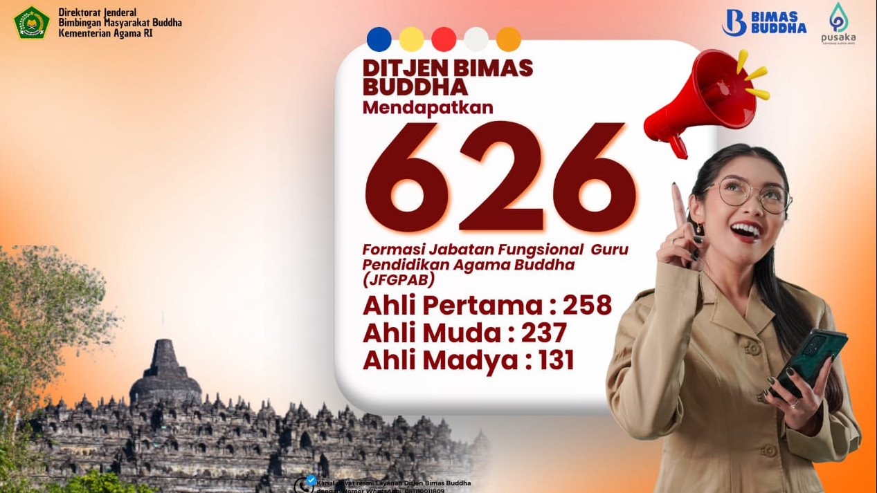 Pemerintah memberikan angin segar bagi pendidikan agama Buddha di Indonesia. Sebanyak 626 formasi Jabatan Fungsional Guru Pendidikan Agama Buddha resmi disetujui, membuka peluang pengembangan karir sekaligus memperkuat pendidikan inklusif bagi generasi muda.