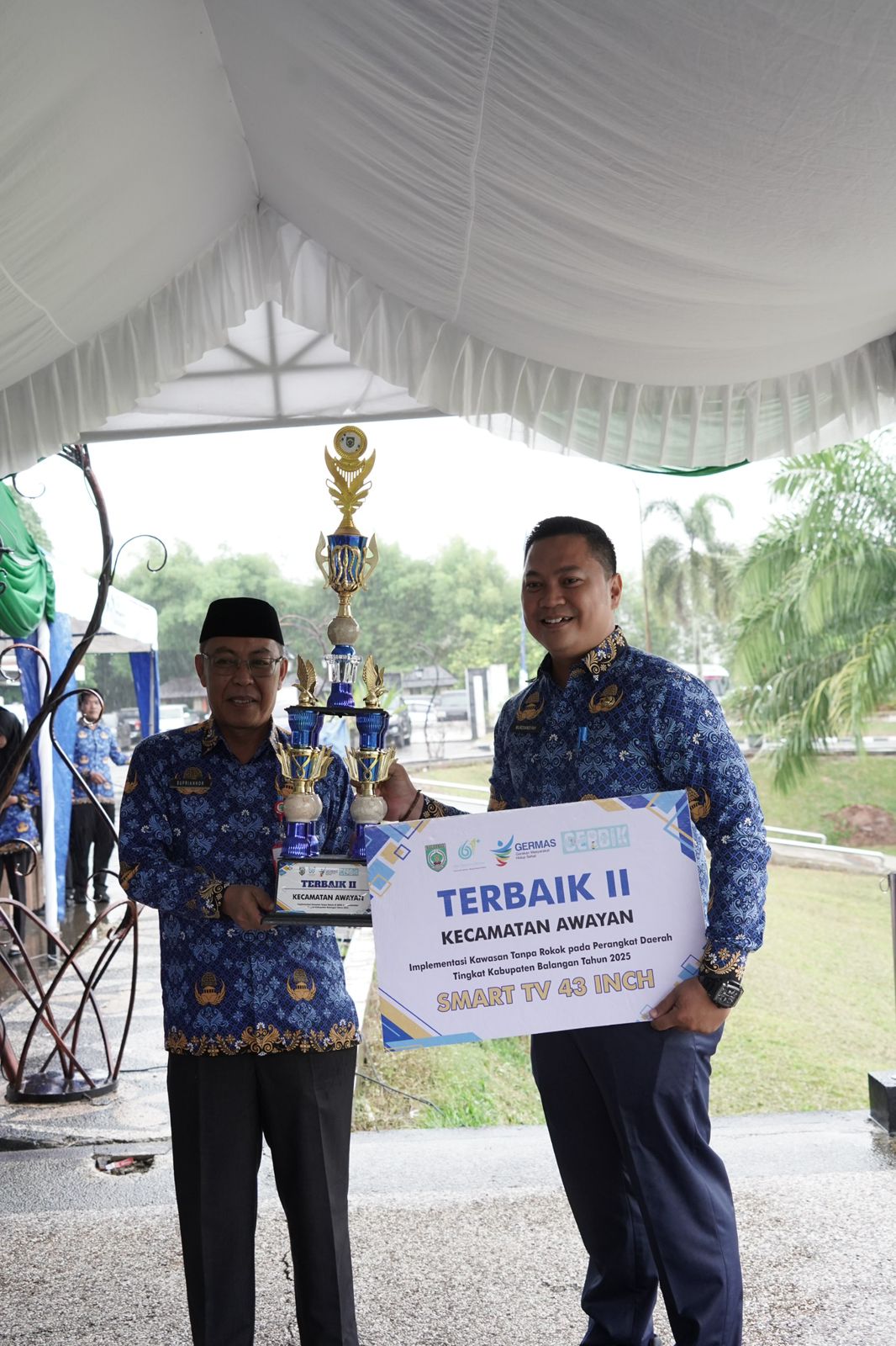 Balangan, chanelindonesia.com โ Kecamatan Awayan berhasil meraih peringkat Terbaik II pada Penilaian Implementasi Kawasan Tanpa Rokok (KTR) bagi perangkat daerah se-Kabupaten Balangan. Penghargaan tersebut diberikan usai Upacara HUT ke-54 Korpri yang digelar di Halaman Kantor Bupati Balangan, Paringin Selatan, Senin, 8 Desember 2025.