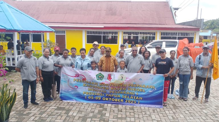 Boven Digoel, Chanelindonesia.com – Kontingen Kabupaten Boven Digoel dilepas secara resmi pada Jumat (3/10/2025) untuk mengikuti Pesparani Katolik Tingkat Provinsi Papua Selatan pertama. Kontingen akan berkompetisi dalam berbagai mata lomba, termasuk cerdas cermat rohani, tutur kitab suci, serta lomba mazmur untuk kategori anak, remaja, orang muda Katolik (OMK), dan dewasa.
