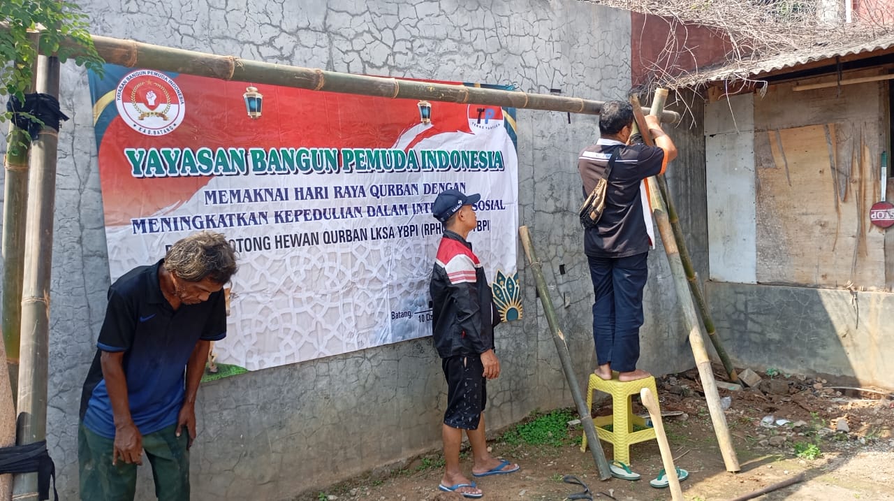 Persiapan tersebut dilakukan di area Rumah Potong Hewan Qurban (RPHQ) LKS YBPI dan mencakup pemasangan blantar dan payung peneduh dari bahan spanduk bekas, serta pemasangan spanduk acara. Langkah ini merupakan bagian dari efisiensi operasional lembaga.