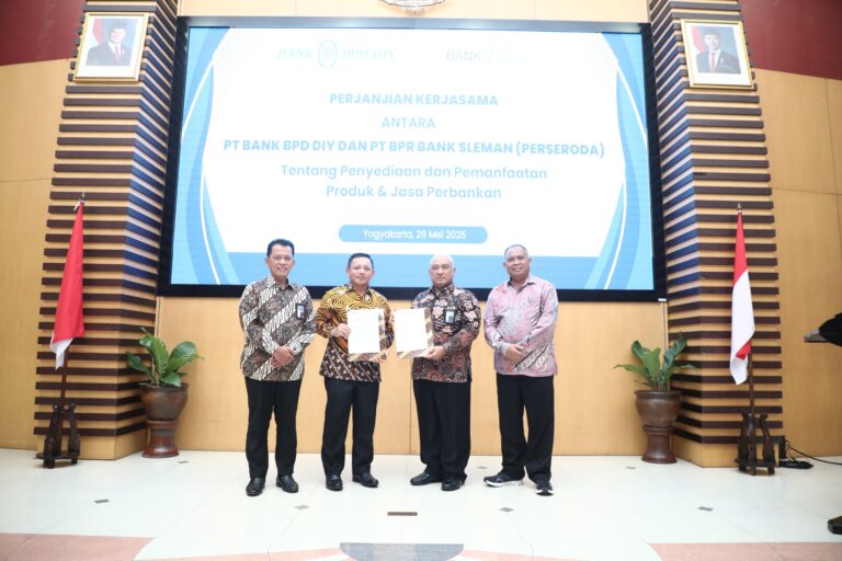 Kilasinformasi.com, Sleman – Upaya memperkuat ketahanan ekonomi daerah kembali diperlihatkan dengan langkah kolaboratif dua bank milik daerah. PT Bank BPD DIY resmi menandatangani perjanjian kerja sama dengan PT BPR Bank Sleman pada Senin (26/5), bertempat di Kantor Pusat Bank BPD DIY Bumijo, Yogyakarta. Kesepakatan ini menandai babak baru sinergi antarbank daerah dalam menghadirkan layanan keuangan yang lebih inklusif dan adaptif terhadap era digital.