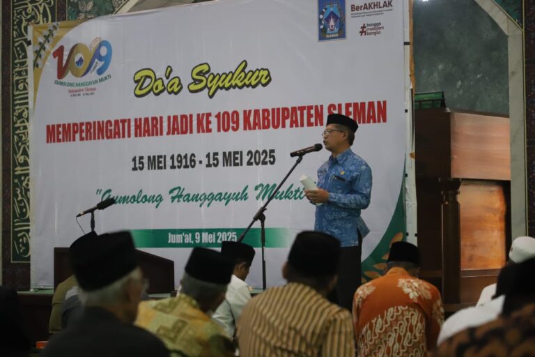 Kilasinformasi.com, Sleman, – Menjelang perayaan hari ulang tahun ke-109, Pemerintah Kabupaten Sleman menyelenggarakan doa syukur umat Islam sebagai ungkapan terima kasih atas perjalanan panjang dan pencapaian daerah ini. Acara khidmat tersebut digelar di Masjid Agung Wahudi Soedirohusodo, Jumat (9/5), usai salat Jumat.