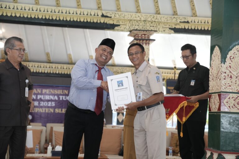Kilasinformasi.com, Sleman – Kabupaten Sleman kembali memberikan penghargaan kepada para Pegawai Negeri Sipil (PNS) yang akan memasuki masa purna tugas. Pada Senin (19/5), sebanyak 232 calon purna tugas yang akan pensiun antara Juli hingga Desember 2025 menerima Surat Keputusan (SK) pensiun secara simbolis di Pendopo Parasamya Sleman. Penyerahan SK ini langsung dilakukan oleh Bupati Sleman, Harda Kiswaya, sebagai bentuk apresiasi atas dedikasi mereka selama bertugas.